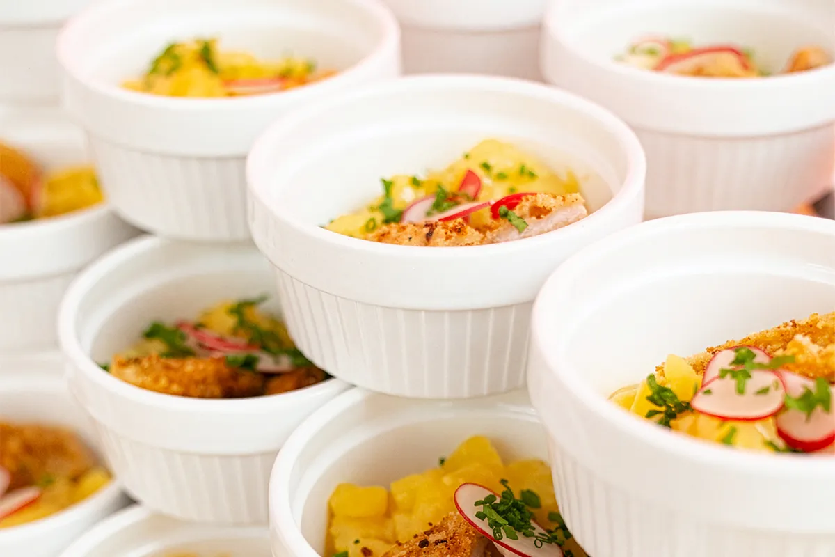 Als Flying in kleinen Bowls serviert